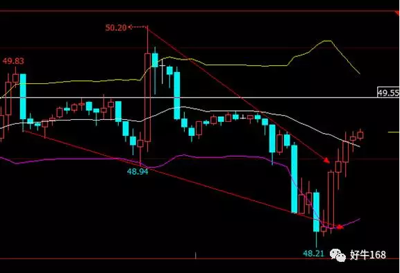 从1小时K线看,前期本美原油明显走弱趋势,美原油也一度跌破49美元/桶,且将前期下行趋势线击穿,空投力量明显。却夜盘受特朗普税改方案,提振美国国内油气板块的行业景气度,美原油出现了一轮反弹。但是反弹高度有限,最终起决定性因素的仍要看俄罗斯的决定。目前趋势线看仍有反弹小空间,等待再次反弹至49.55附近继续做空,止盈于48.50附近,止损位49.80附近。若4月30,任未加入减仓计划,则美原油必会跌破48美元/桶。