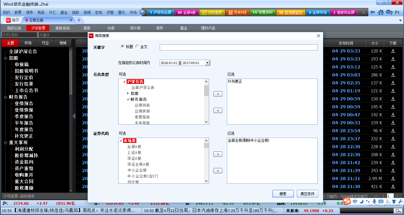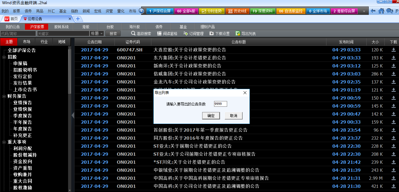 求助 WIND 万德数据库关于2016年1月1日-至今所有主板上市公司发布的年报补丁