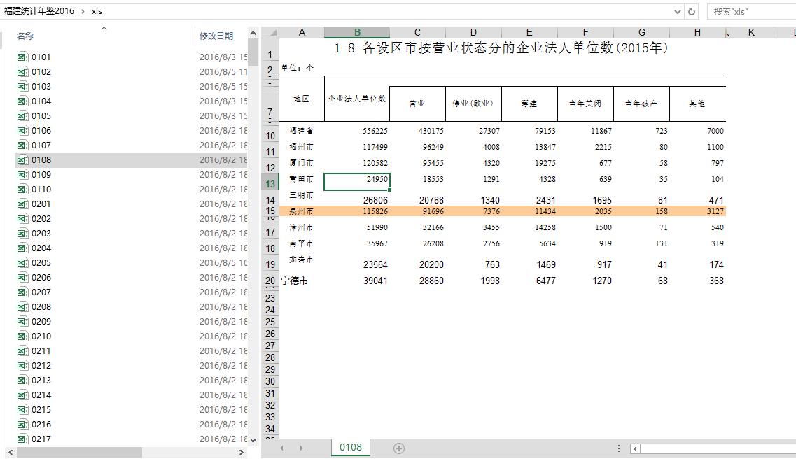 福建统计年鉴2016(Excel)可复制