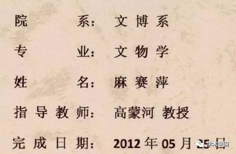 笔者在中国知网上搜索到了这篇论文,作者为麻赛萍,为复旦大学文博系博士生,高蒙河系麻赛萍指导老师,本文于2012年完成。