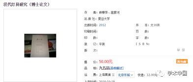 笔者登录孔夫子旧书网,首先在搜索栏输入“论文”,搜索结果以“论文艺”等旧书或旧杂志为主;然后输入“博士论文”,靠前显示的是《马克思博士论文》的旧书,靠后则显示很多高校的博士论文。笔者随便选择其中一项,这篇名为《汉代灯具研究》的博士论文的作者为麻赛萍、高蒙河,出版社一栏是复旦大学,售价50元。在品相描述里这样写道:“本书为博士毕业论文,内页为黑白。请注意:此为未经正式出版的著作,请谨慎购买。售出不退。”