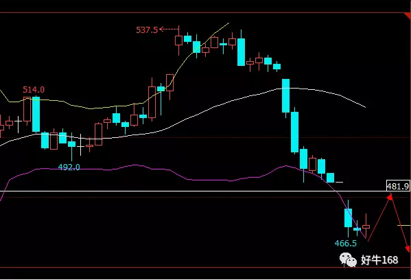 从1小时K线看,目前空投趋势仍在,短期上有波超跌小反弹,但中后期仍然继续看空。建议今日在468附近做多,止盈于476附近,止损于466.5附近。若能上攻482附近继续做空,止盈于475附近,止损于484附近。