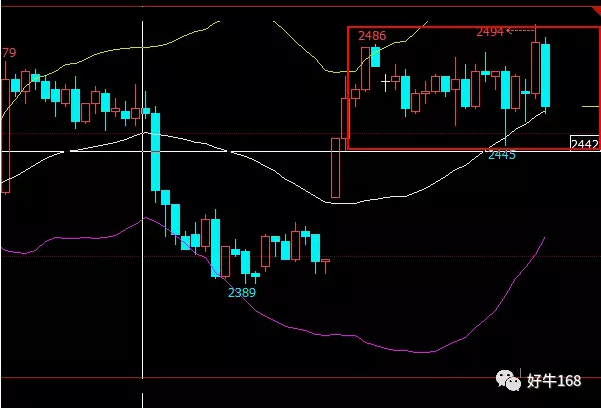 从1小时K线看,整体上菜粕价格就比豆粕价格坚挺,不过目前趋势看,后市还有拉涨可能,但受短期无大利好支撑,上涨动能不足,短期仍将维持窄幅震荡,2440-2500区间操作。建议上攻至2490附近做空,止盈于2450附近,止损于2510附近,回撤至2440附近可以适当做多,止盈于2490附近,止损于2430附近。
