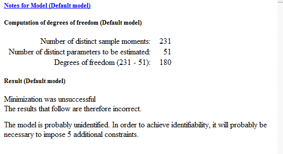 AMOS做CFA,出现default model.如何处理,求助各位大神!