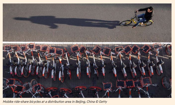 Rather than buy and adapt traditional two-wheelers, Mobike, which has 3.65m bicycles in 50 cities, decided to design its own cycles that would be easier to maintain and connect to the internet.