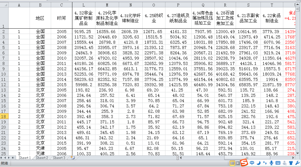 数据均来源于中国工业经济统计年鉴,统计年鉴中缺失的地方,我都用红色的0标记出来了。现售价50论坛币(你千万别说多,我光买统计年鉴都花了100多论坛币,不信你去买2016年中国工业统计年鉴试试,更别说我花了五六天的时间录数据,而你即使没有论坛币,也只需要签到10天拿经验换论坛币都够了)。