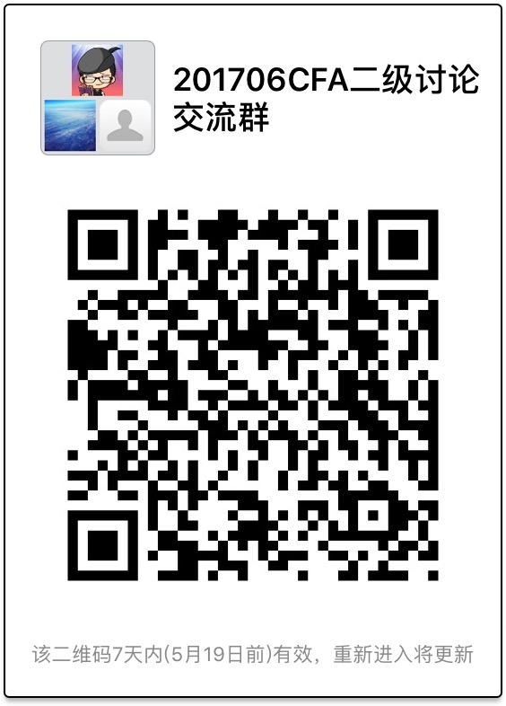 freedomzhx 发表于 2017-5-12 15:27 谢了,自己顶一下 附件是我个人微信二维码,暂时群还没建起来,扫码找我吧,谢谢!!!请注明CFA二级交流 ...