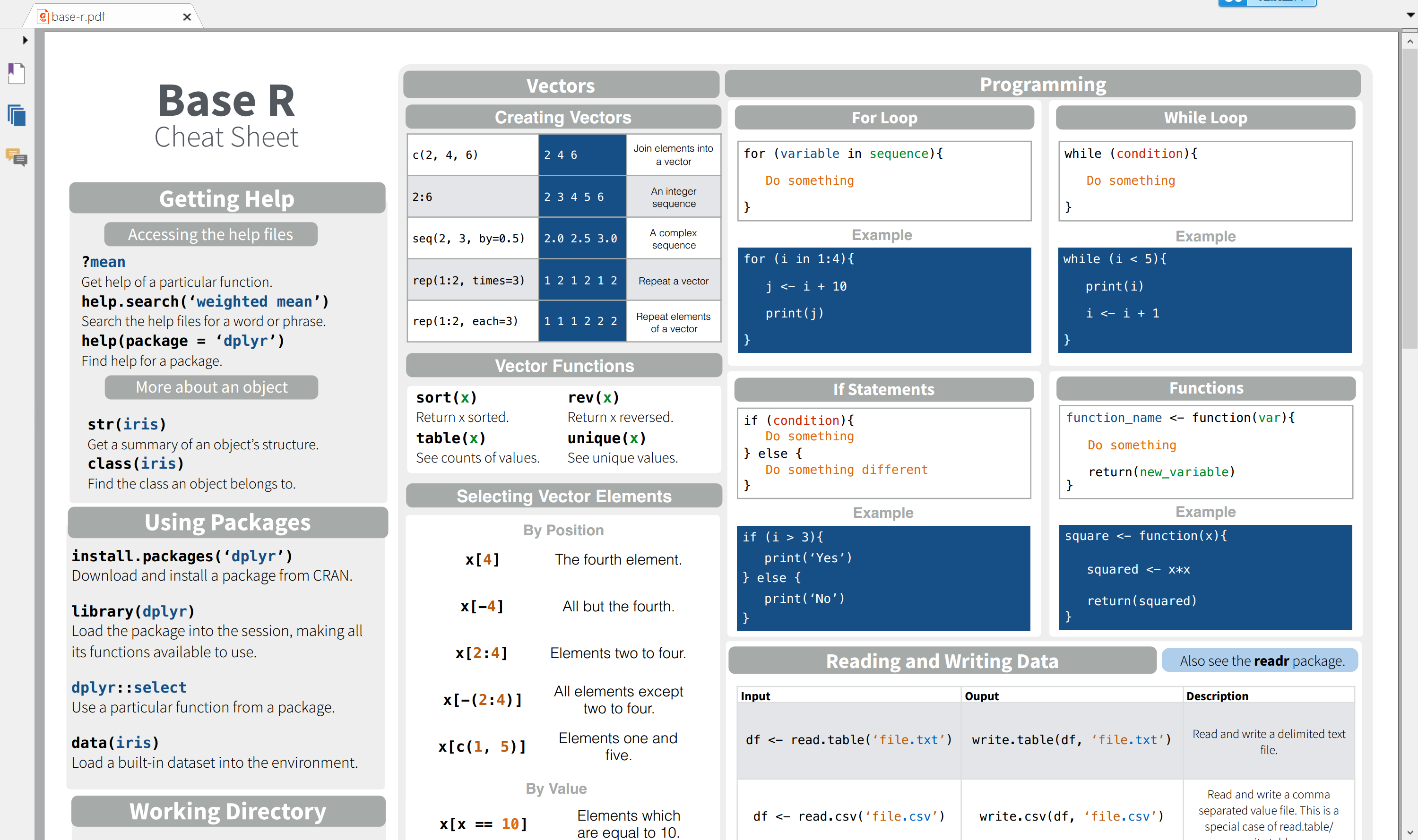 16张R语言学习卡片