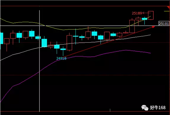 1小时线看,今日受一带一路峰会的圆满成功,吸引不少外资的情况下,恒指今日仍有反攻机会,建议25100附近继续做多,止盈于25250附近,止损于25080附近。短期难出现较大幅度杀跌,保持多投为主,25100已经形成价托,后期仍有上破25500的动能。