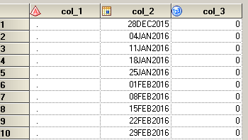 foocares 发表于 2017-5-16 21:22 如果是我,我会先用proc print打印下前五行,看看到底col1里放的是什么值。 其次,在sql里用is missing来判 ...