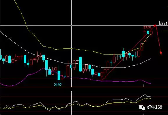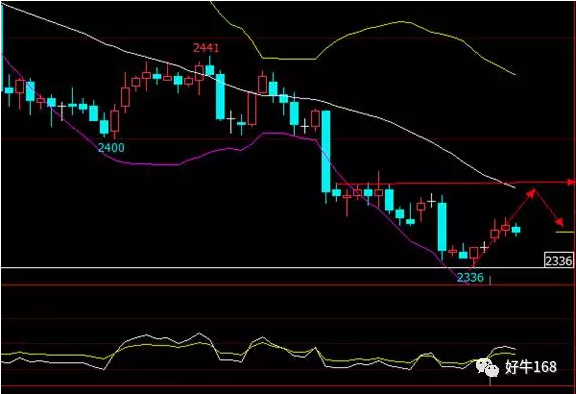 从1小时K线看,郑醇在无大利好支撑,基本面偏向利空,虽BOLL开出大喇叭口,但依然短期上攻空间有限,建议2330附近做空,止盈于2280附近,止损于2350附近。回撤至2245附近,或将再度上攻,2245附近做多,止盈于2300附近,止损于2230附近。