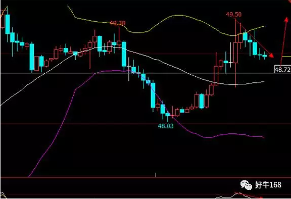 从1小时K线看,美原油即将受到上轨的压制,RSI走出背离后,进行了一轮回撤,这也不难发现,我们不能太过于看高美原油,此次反弹的动力明显弱于去年十一月份的减产协议的行情,不过美原油中后期多投并没改变。美原油短线仍有回踩需求,建议等待回踩到48.70附近继续做多,止盈于49.35附近,止损于47.50附近。