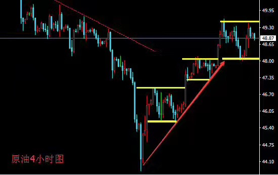 那么短线原油我们看下日线级别的整理,注意49.4-49.6的压力,下方看下48.5-48.3的支撑,等操作机会。
