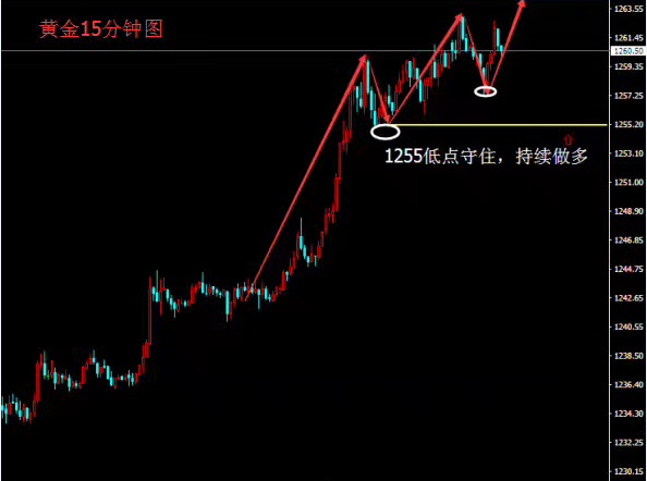 今天重要低点是1255,守住1255低点,请投资者持有早盘1258-59多单,空仓的朋友可现价1259继续多,目标:1265-1268