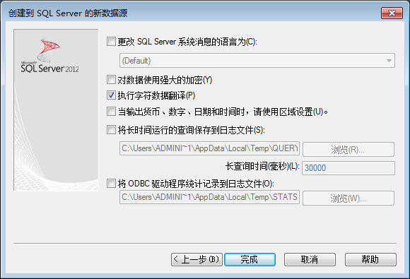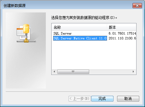 3.选择sql server native client 11.0(可能由于版本不同这里不太一样,但是记得要选择长的这个不时sql server这个),点击“完成”