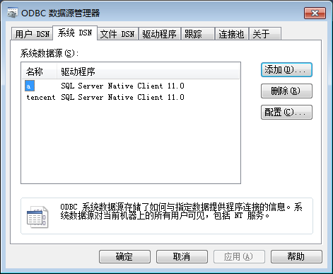 2.打开odbc后,在“系统DSN“中点击“添加”