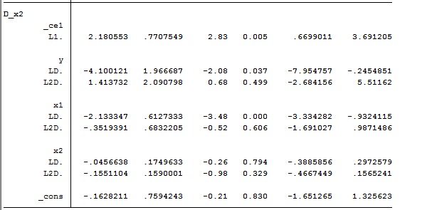 在线求职,向量误差修正VEC结果分析,以下是结果,哪位大侠帮帮忙 多谢啊