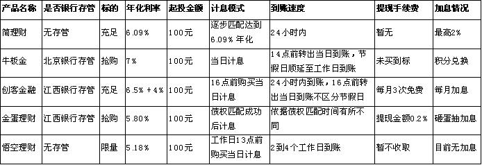 对于初次接触P2P的投资者来说,活期产品进入门槛低,退出方便,是新手用户的最佳选择。可以从企业背景,是否有银行存管,资产端状况,收益率,起投金额,计息模式,到账速度,提现手续费,加息情况等各个方面来考察活期p2p平台的实力。目前p2p领域的活期理财产品,支持随时转出,年化利率大致在5.18%—7.5%,即1万元投一年收益518元到750元,利率是银行活期的15倍以上,是宝宝类产品的2倍左右。笔者体验了一些主流活期产品后做了以下总结:
