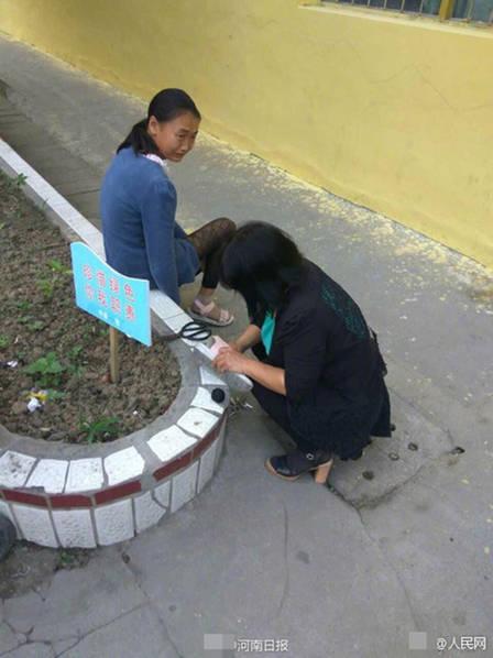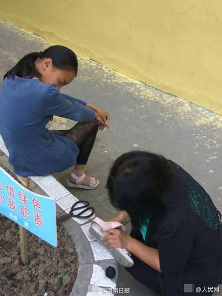 5月25日报道,近日,一组老师蹲地为学生补鞋照在网上热传。照片中老师蹲在花坛边,低头缝补一只粉色凉鞋。旁边坐着一个小女孩,背过身去拭泪。