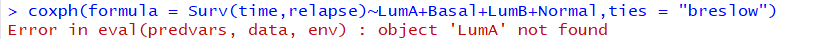 好像不是,我试了加上data=z也依然报错。貌似是列名的数据类型出了问题,如果重命名names(z)[1]=LumA,就不会报错。但是不明白为啥会这样