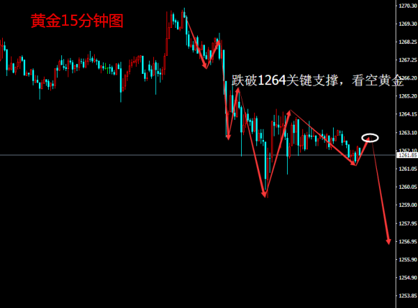 昨晚1264.2附近空单请投资者持有,今日守住1268.7昨日欧盘高点,建议1266下先空黄金,看震荡走低至1257下方。