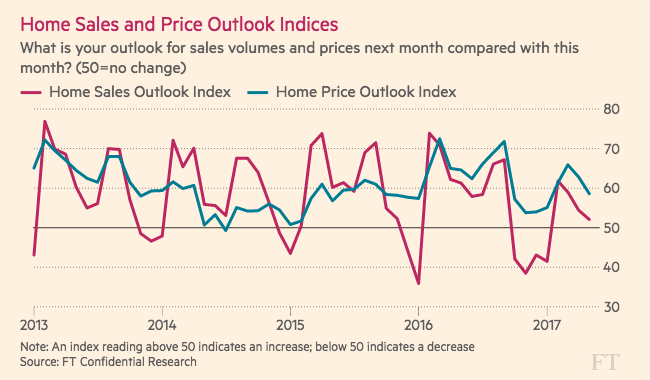- Despite signs of a cooling market, developers maintained a positive outlook for sales volumes for a fourth straight month and they also expect prices to continue rising, although both to a reduced degree.