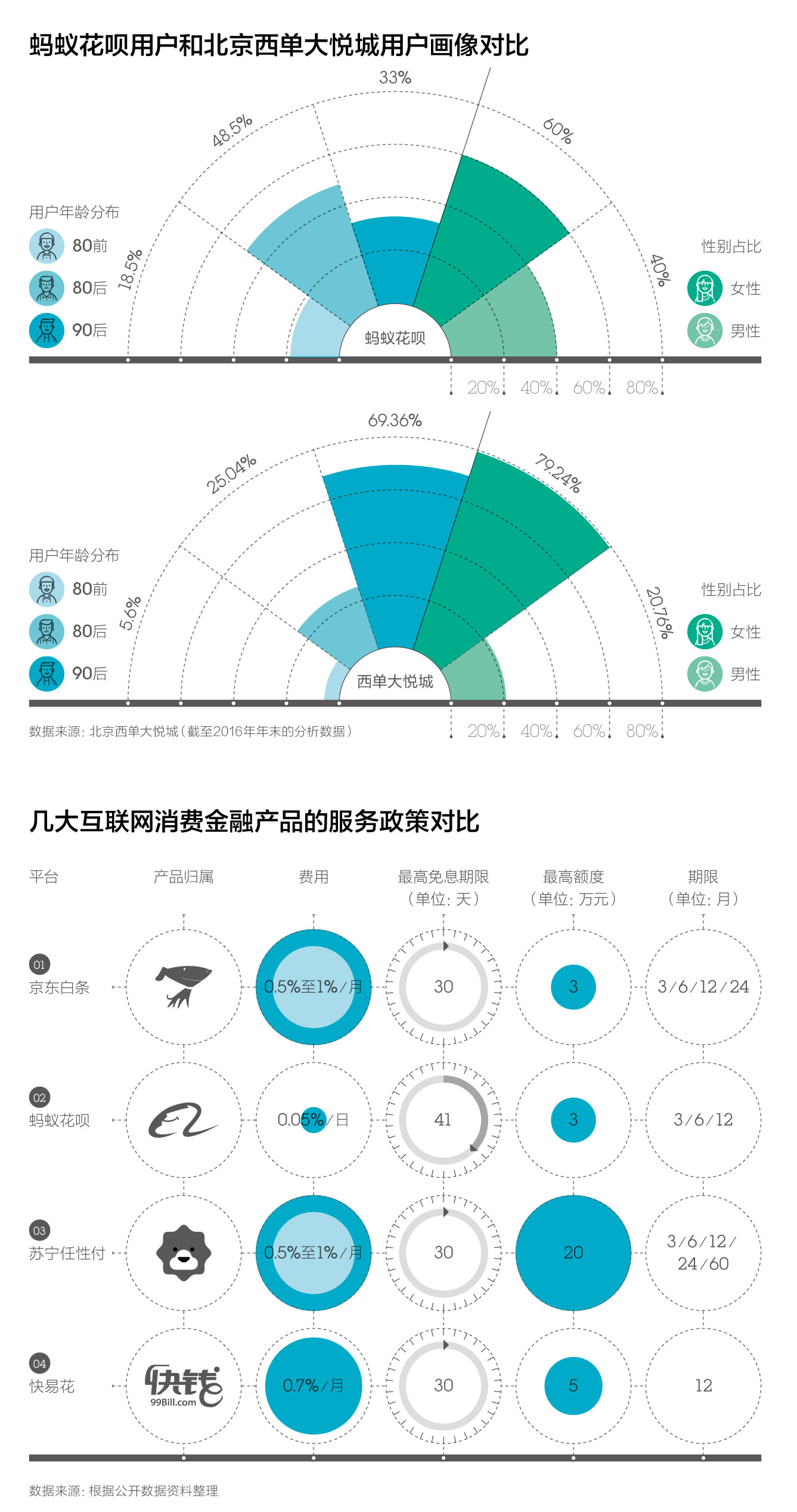 据张灿透露,西单大悦城最初也曾考虑过选择蚂蚁花呗以外其他相似的互联网消费金融产品,比如京东白条,但做过调查统计过后,发现双方的用户重叠度并不高。