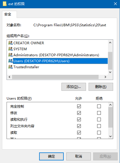 4.最重要的是这一步,点击“users”,然后勾选下方“允许”“完全控制”。
