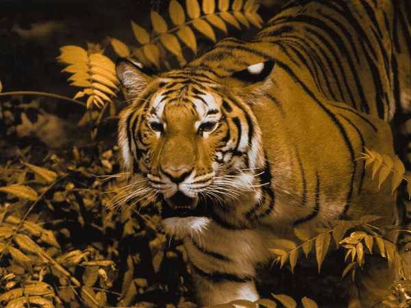 红绿色盲视觉下的老虎,这也是老虎一身橙装却能闷声发大财的原因