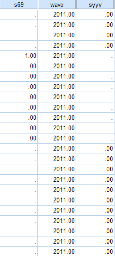 想用compute命令 不知道为什么不对 syyy=s69 if syyy=$sysmis