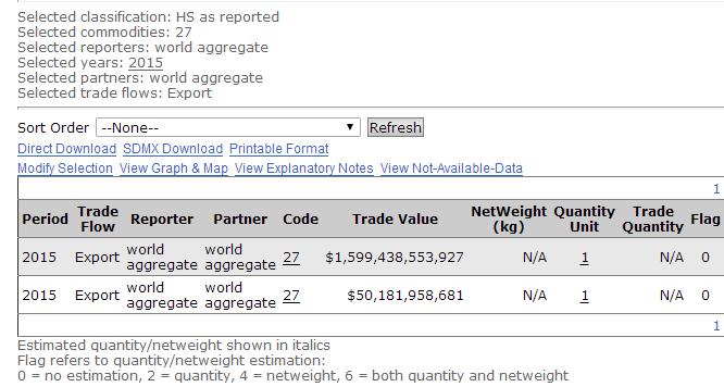 uncomtrade 里用express selection 查某产业世界出口总额出现了问题