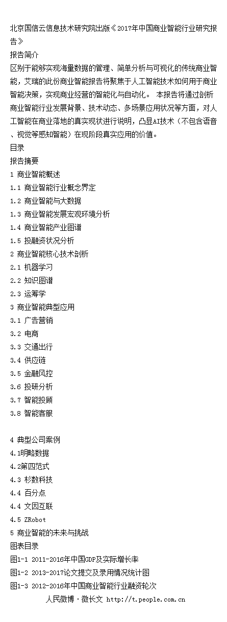 北京国信云信息技术研究院出版《2017年中国商业智能行业研究报告》