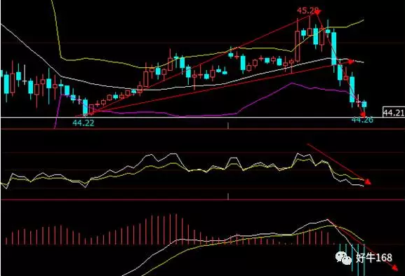 从1小时k线看,美原油仍处于下行趋势中,不过受44.22附近的小支撑,短期杀跌动能在逐步减弱,预计今日仍将测试43.76支撑,空投趋势仍在,若今日再度下破44,不破43.76,则利空出尽,可以等待重新站稳44附近做多,止盈于45附近,止损于43.75附近。若再度下破43.76,则短期操作空间不大,等待欧佩克成员国出台相关建议后再做单。目前产油国矛盾正在逐步酿造,若欧佩克成员国不再执行减产协议,恶意抢占市场份额,则美原油有望跌至40附近。