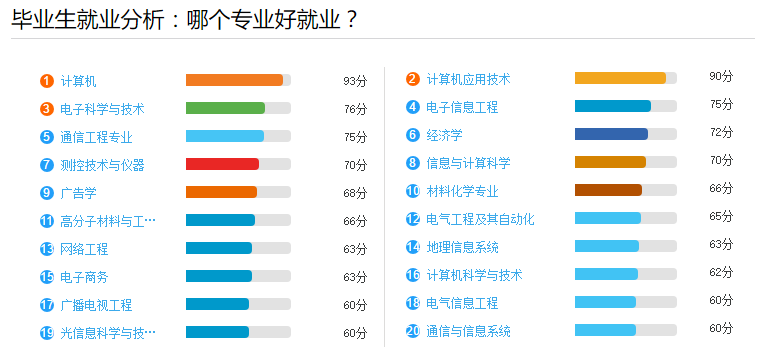 数据显示:南京邮电大学毕业生就业最好的地区是南京;就业最好的专业是计算机,其次是计算机应用技术。