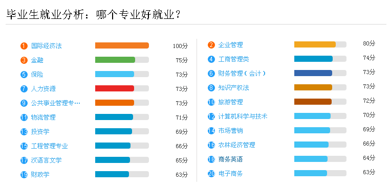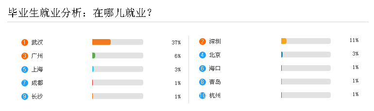 数据显示:中南财经政法大学毕业生就业最好的地区是武汉;就业最好的专业是国际经济法,其次是企业管理。
