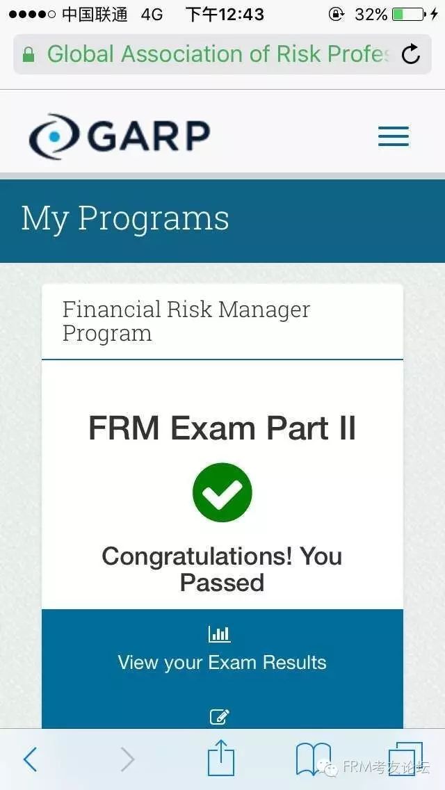 方式二:在线查询。FRM考生可以登录GARP官方网站,使用自己当时注册的用户名和密码,查看自己的考试成绩。