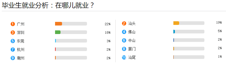 数据显示:汕头大学毕业生就业最好的地区是广州;就业最好的专业是广告学,其次是英语。
