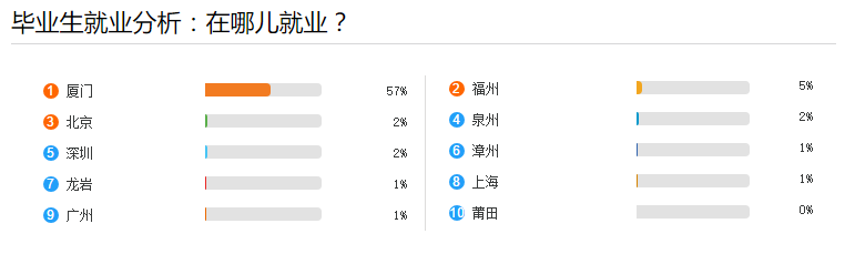 数据显示:集美大学毕业生就业最好的地区是厦门;就业最好的专业是工商管理学,其次是体育教育。