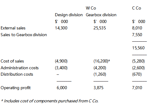 C Co manufactures components for gearboxes. It sells the components globally and also supplies W Co with components for its Gearbox manufacturing division.