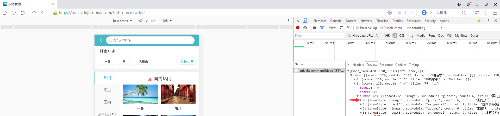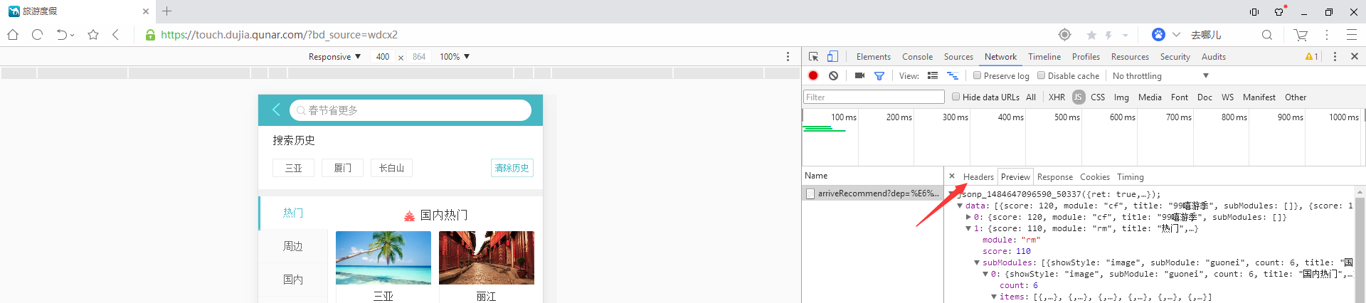 →点击数据包,然后点击Preview,可以观察JS结构的数据