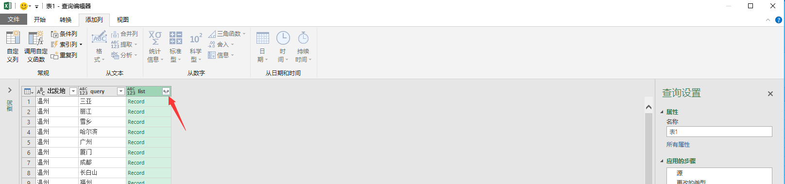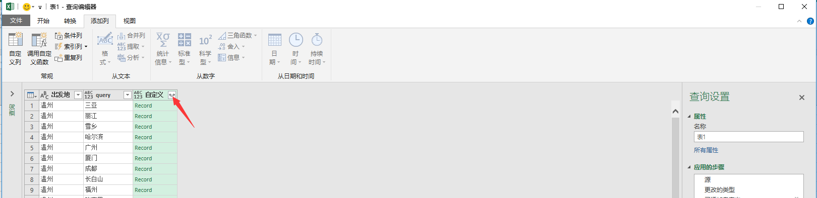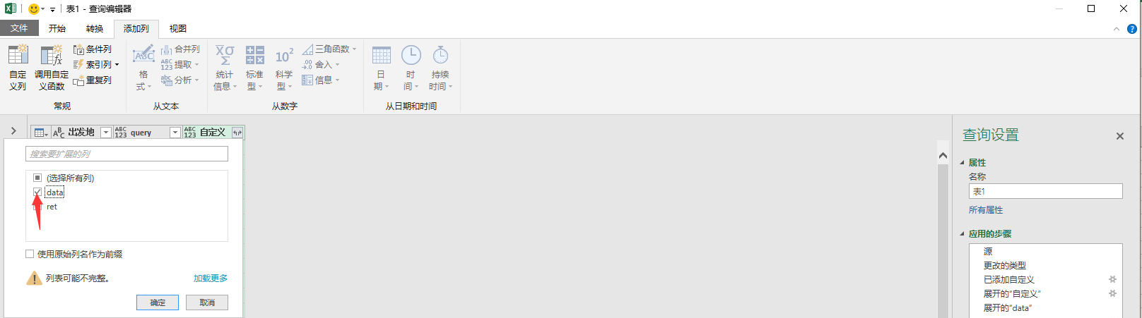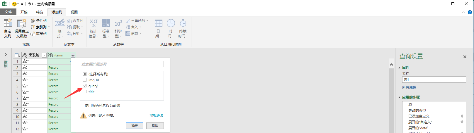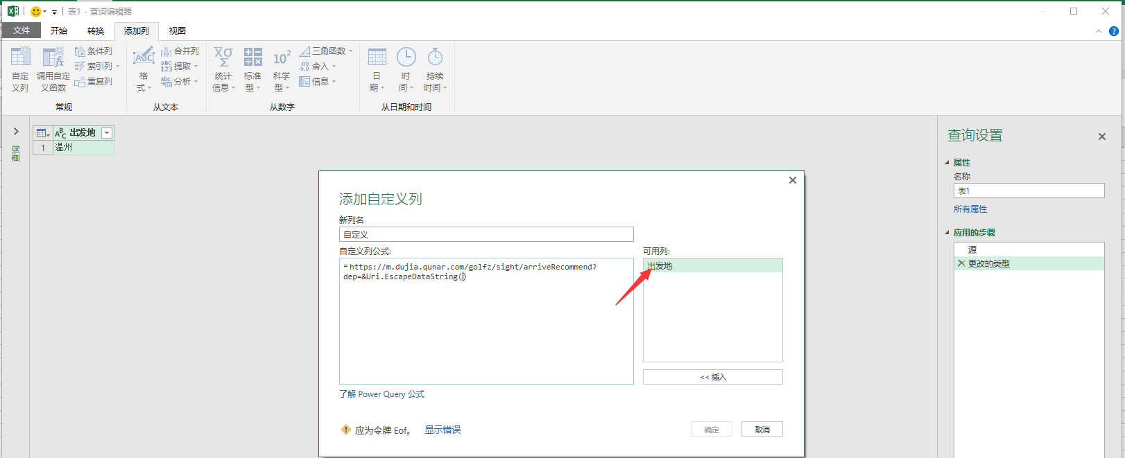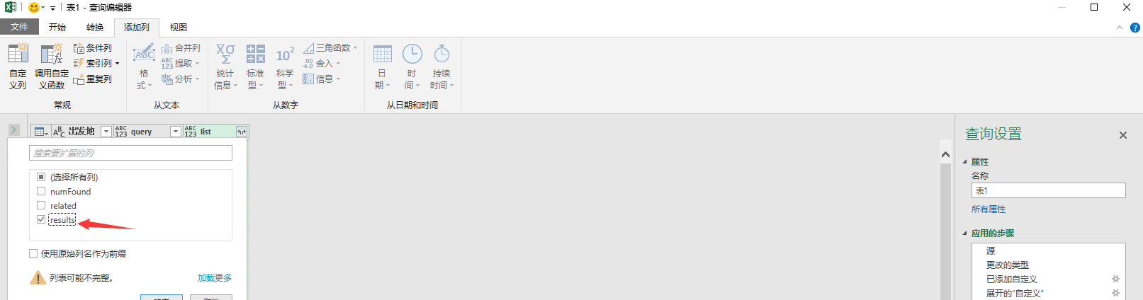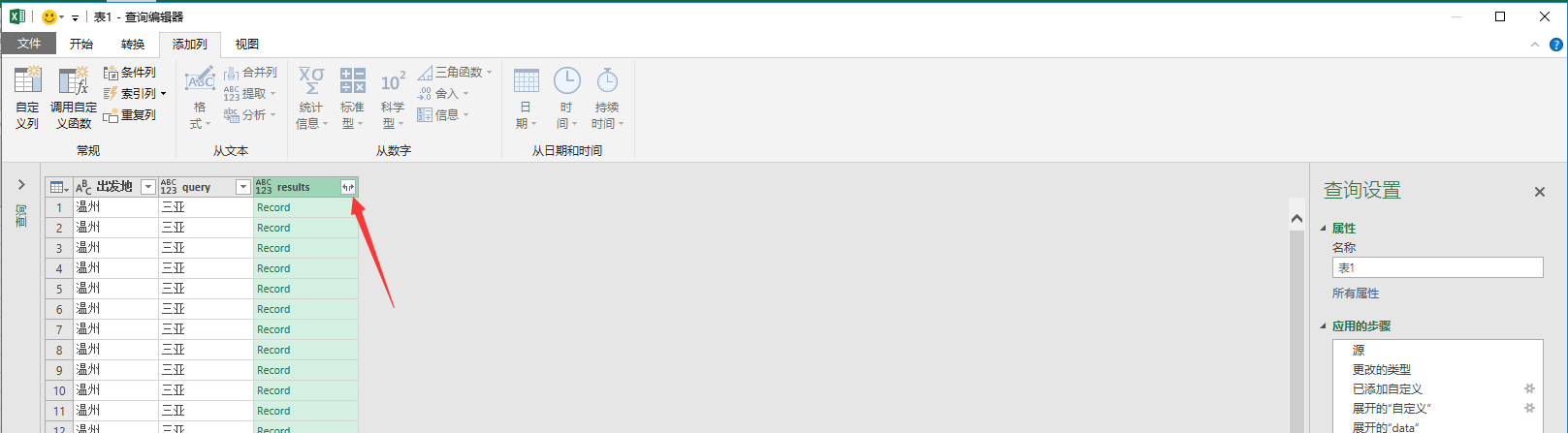 注:插入的函数Web.Contents()需要在括号里面加“”号,表示引用文本。