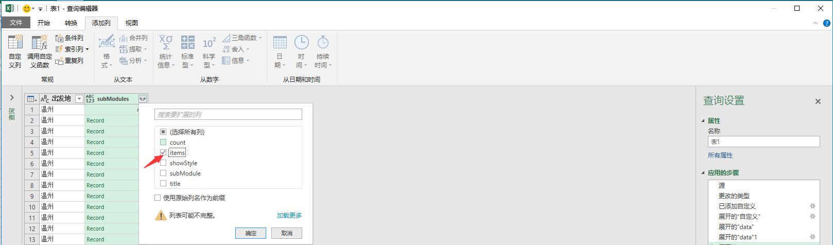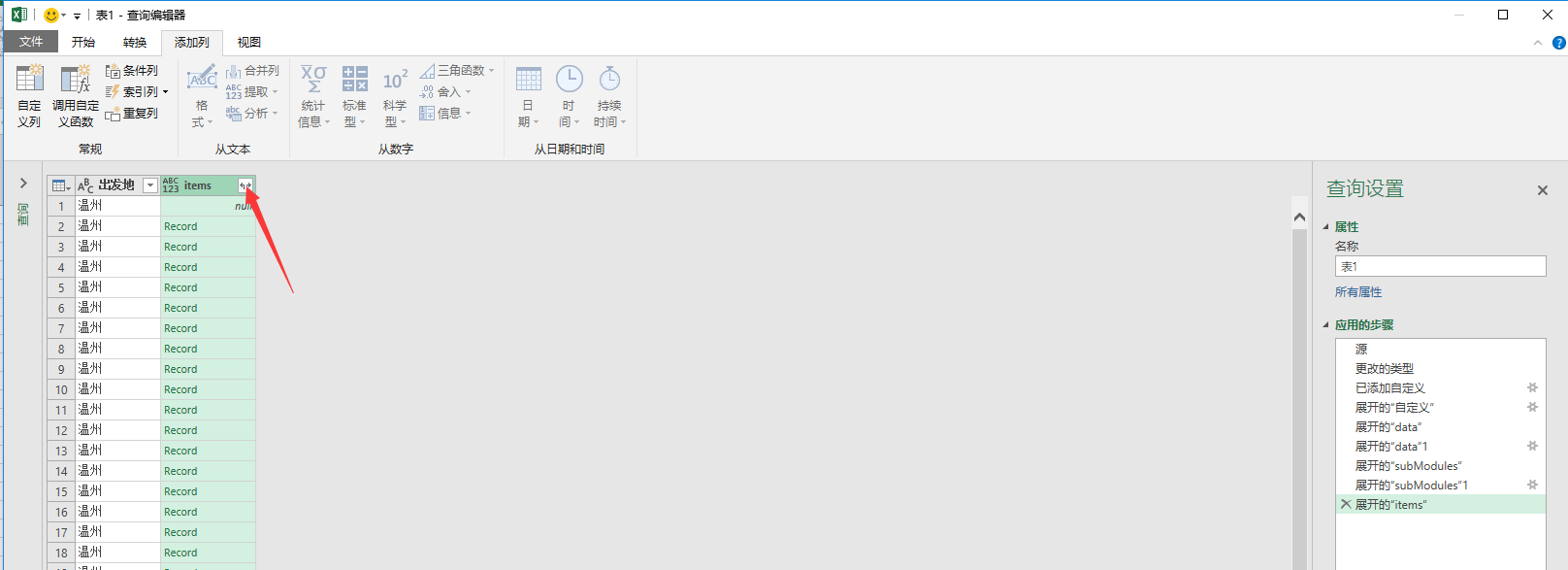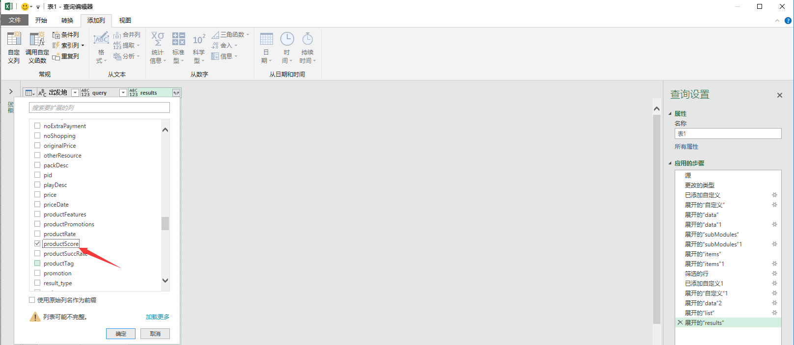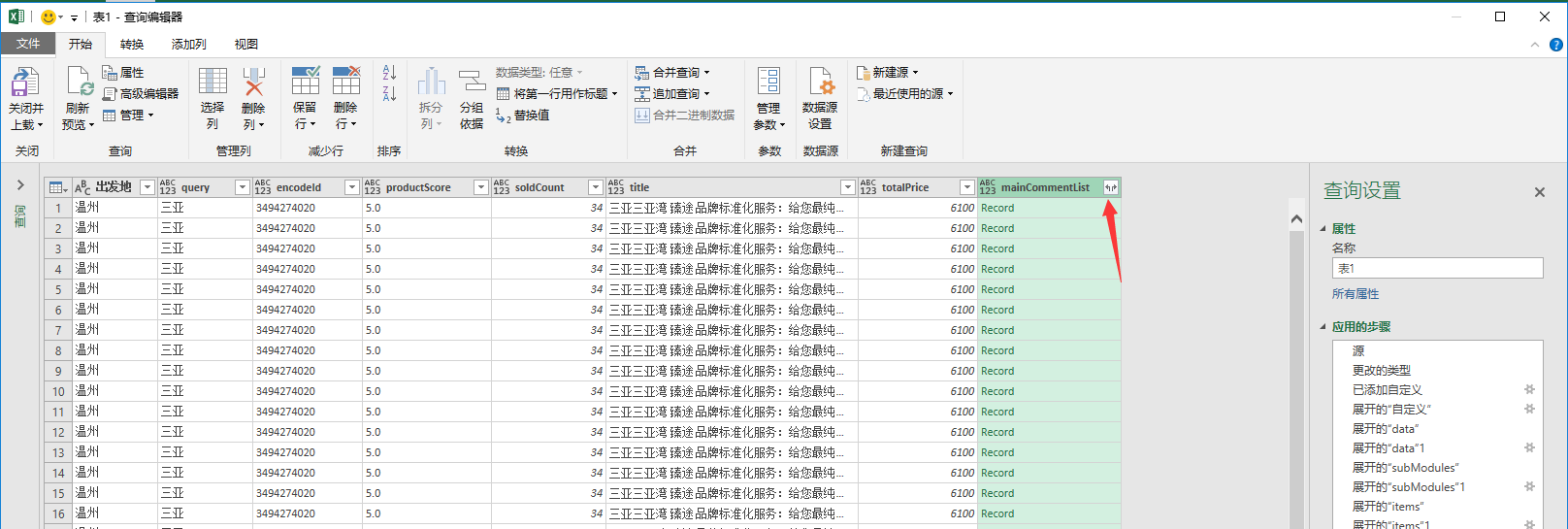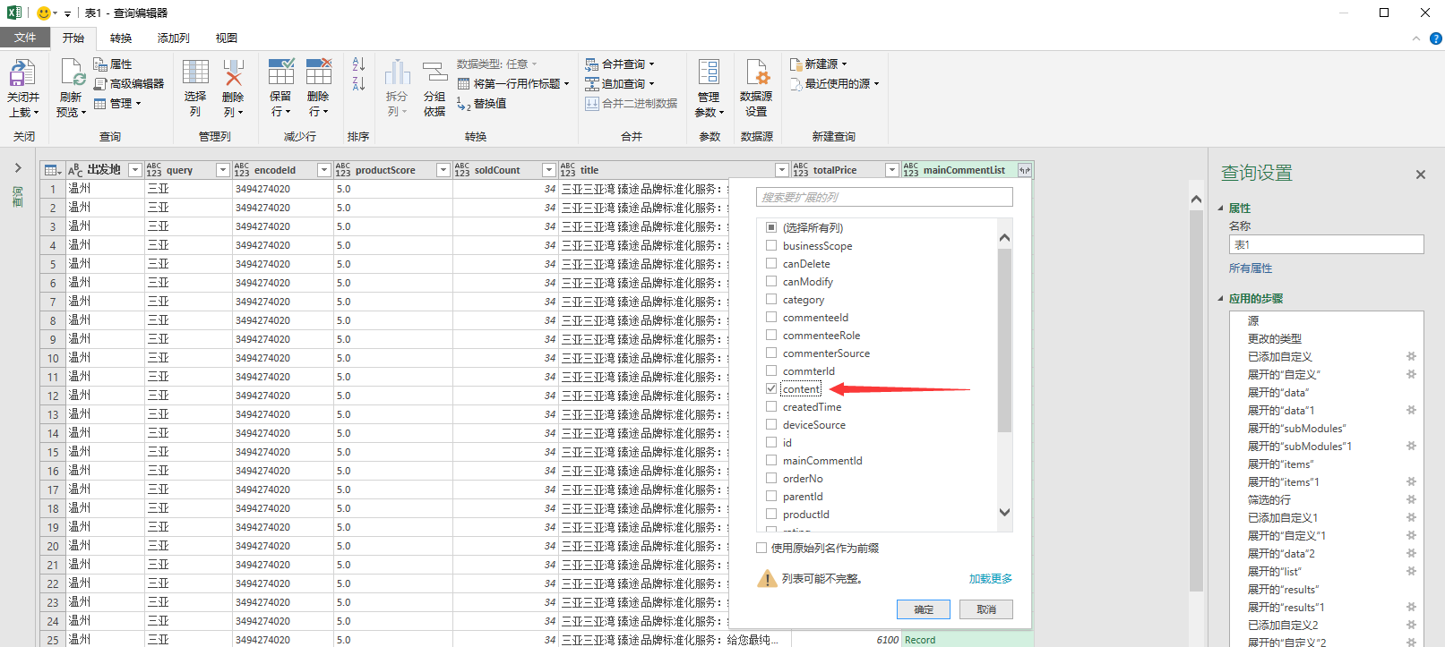 注:插入的函数Web.Contents()需要在括号里面加“”号,表示引用文本。