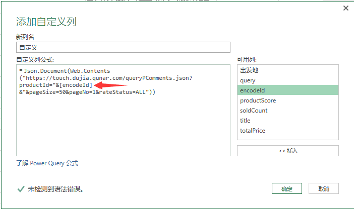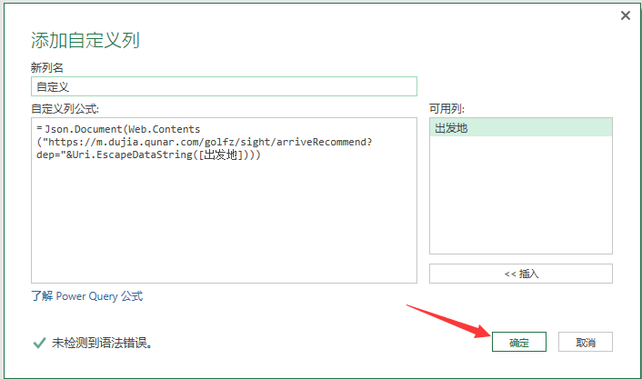 →插入Web.Contents函数→插入Json.Document函数→确定