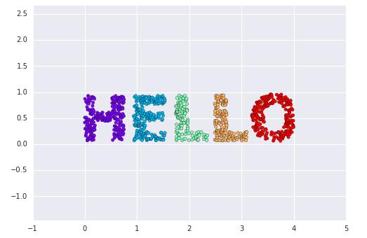 构建示例数据集 X,一组拼接成“HELLO”字样的散点样本: