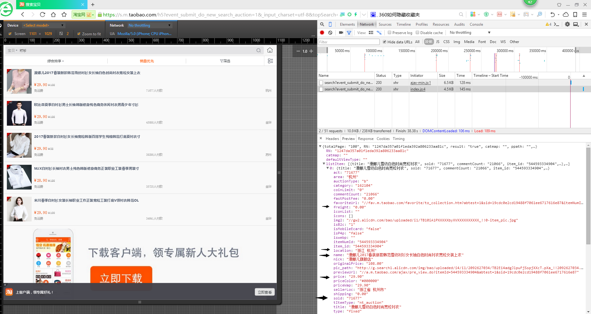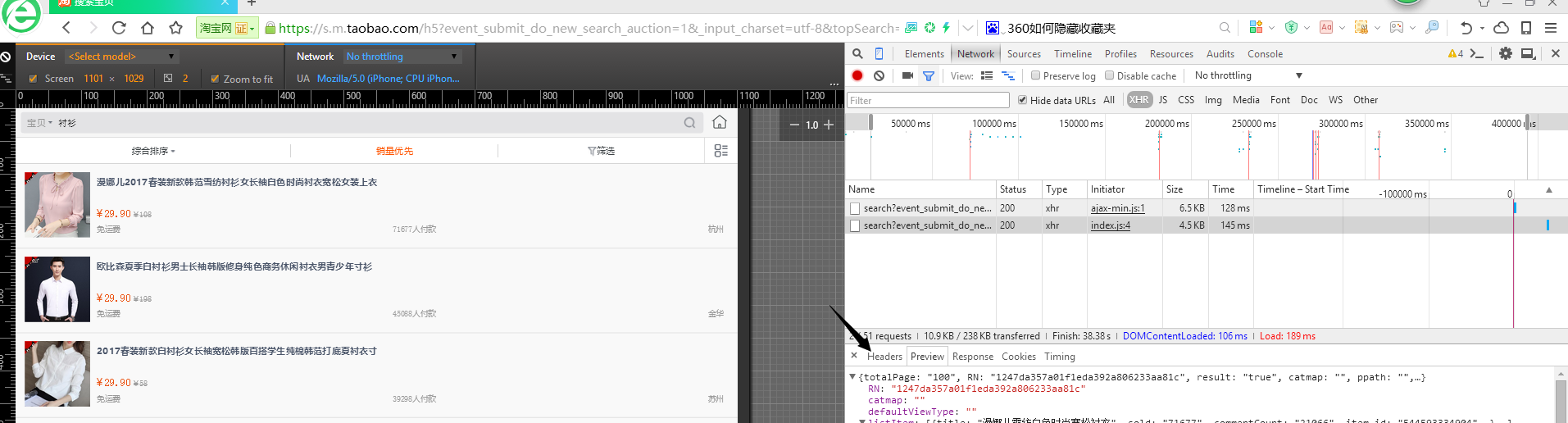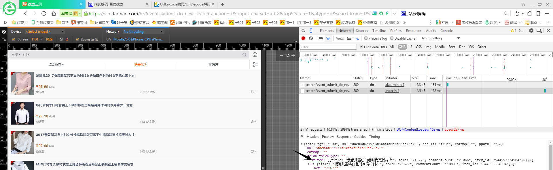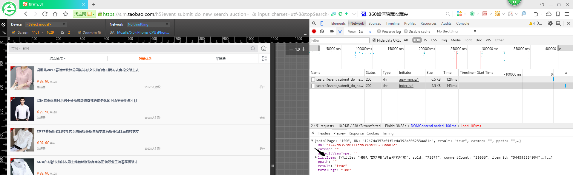 →回到淘宝页面发现我们需要的数据在listItem下。