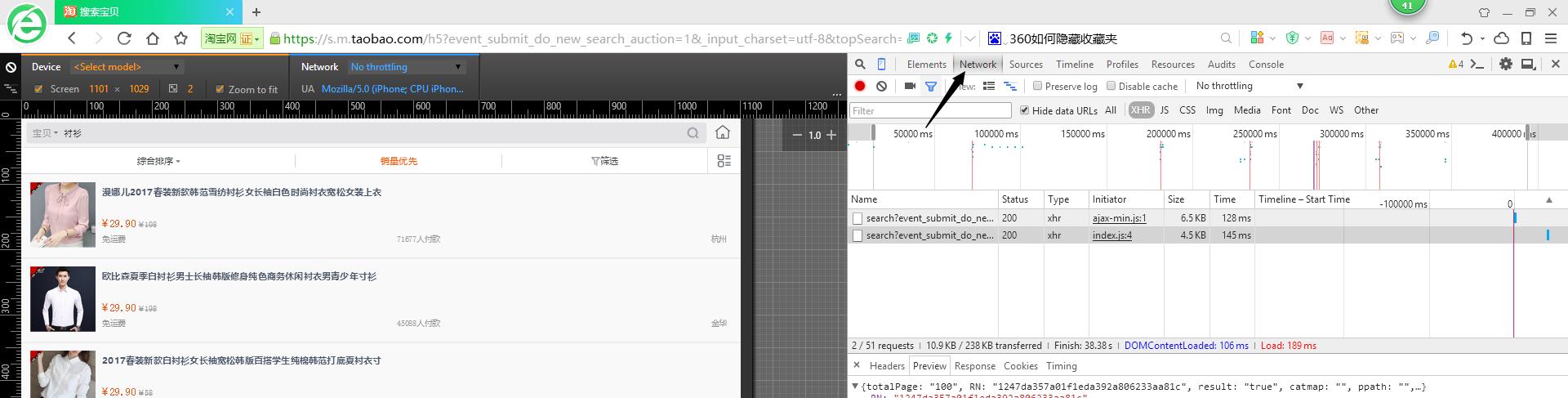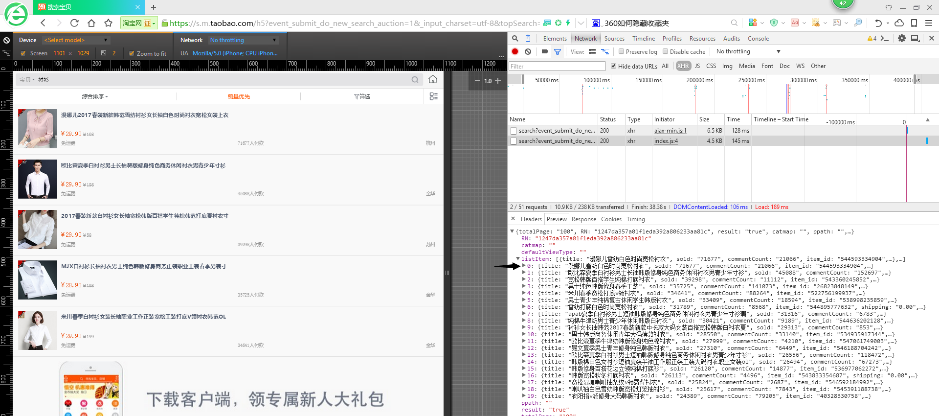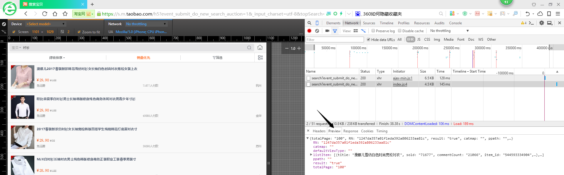 →回到淘宝页面发现我们需要的数据在listItem下。