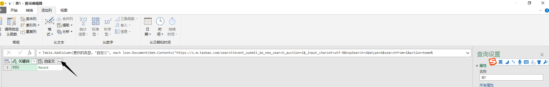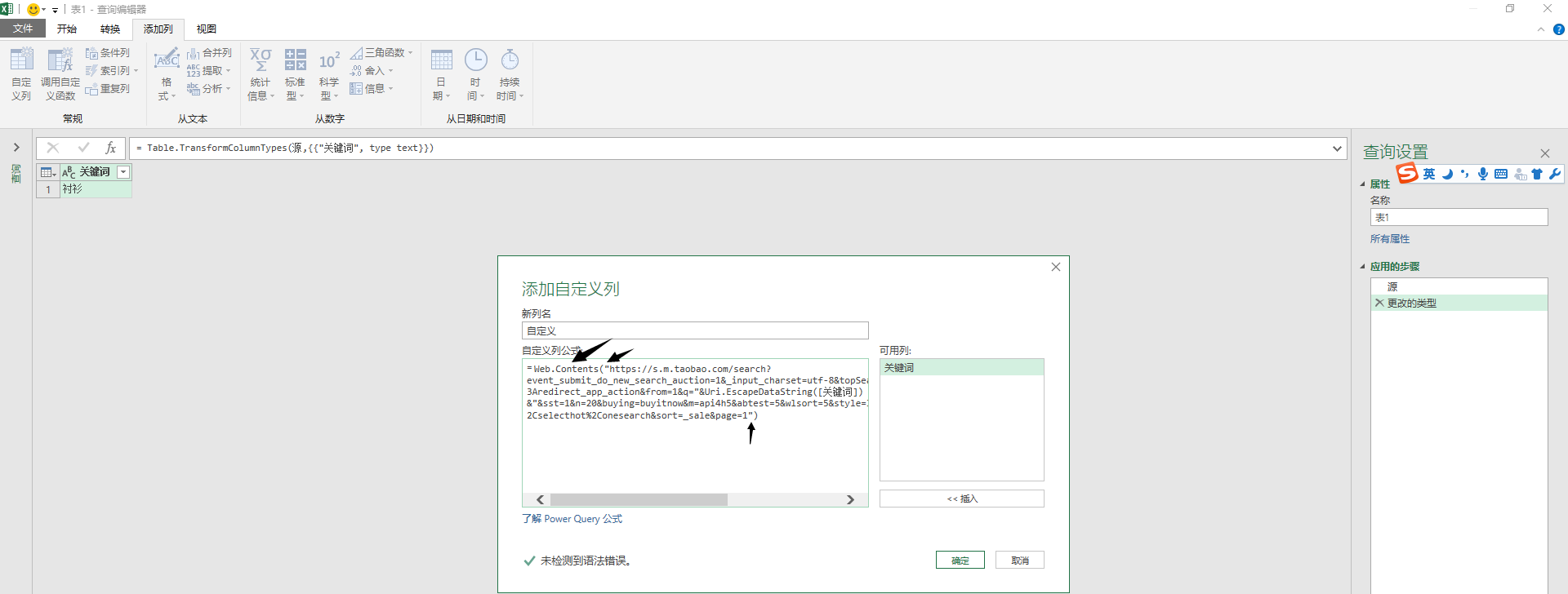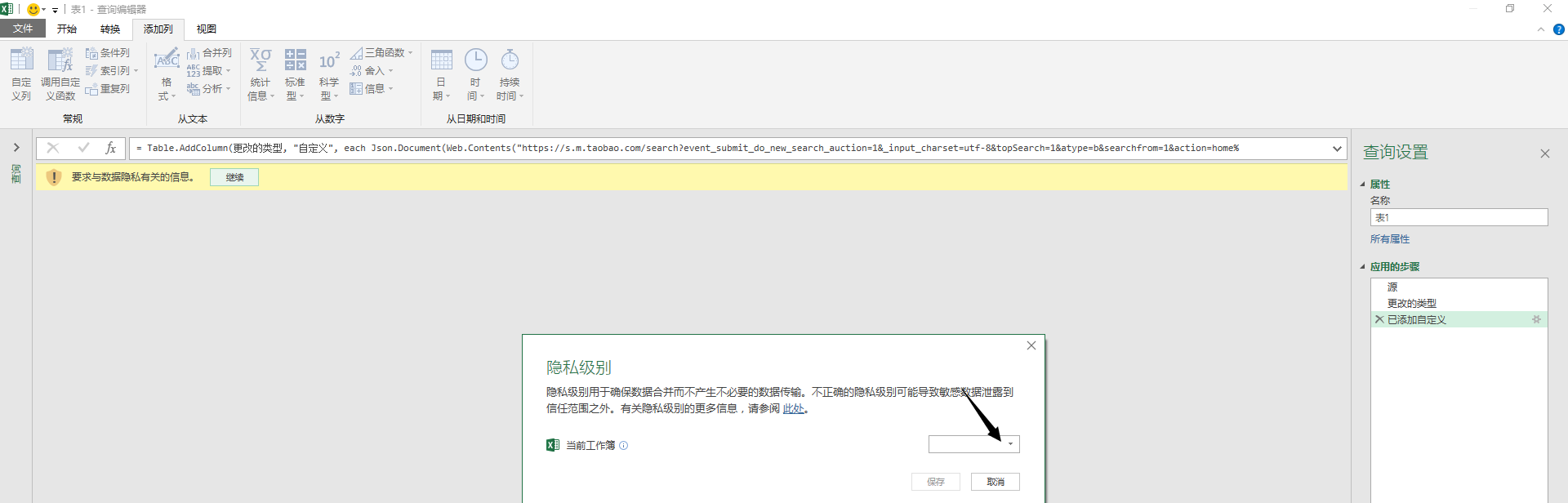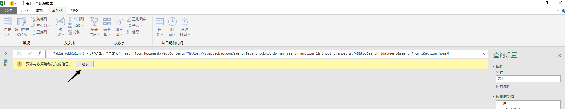 注:插入的函数Web.Contents()需要在括号里面加“”号,表示引用文本。