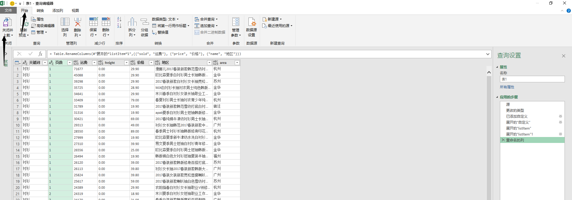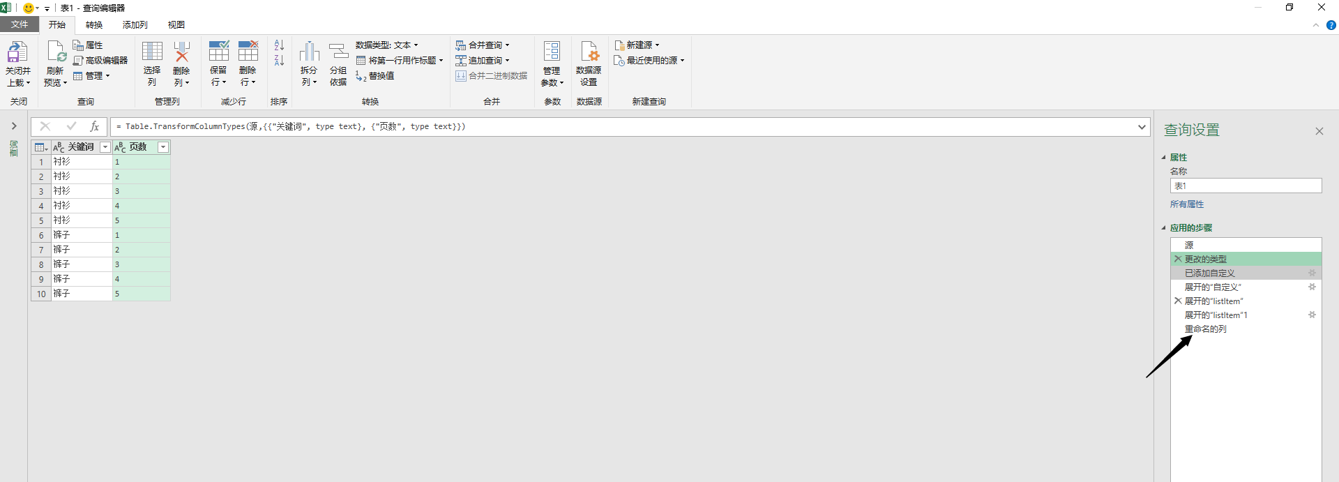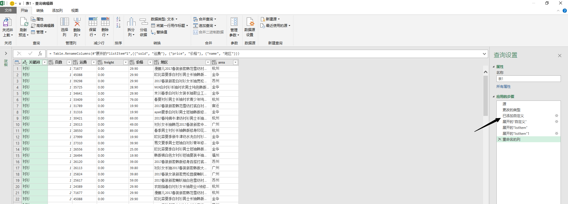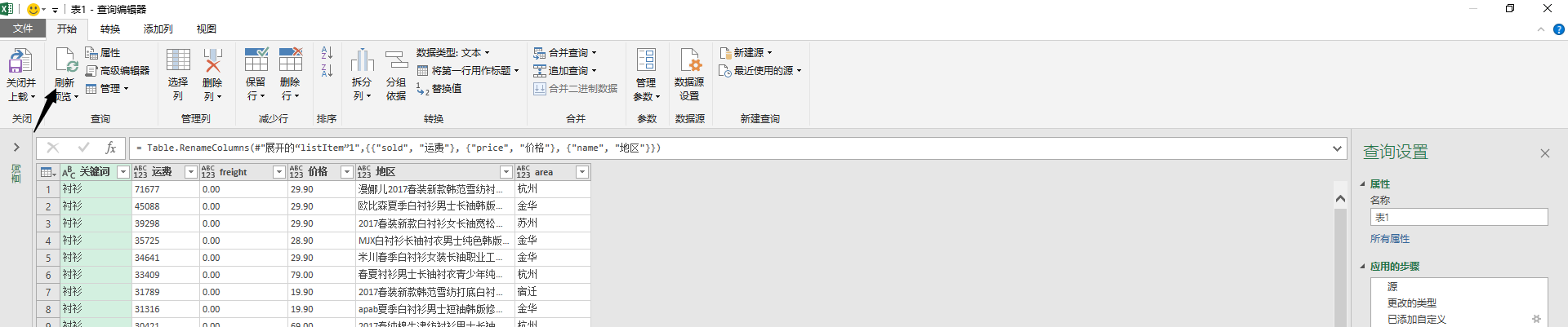 →到这里,一个简单的爬虫就算完成了。Power Query有一个非常强大的功能就是他可以记录我们的操作,如果需要多个关键词的数据只需要在添加后刷新一下即可。
