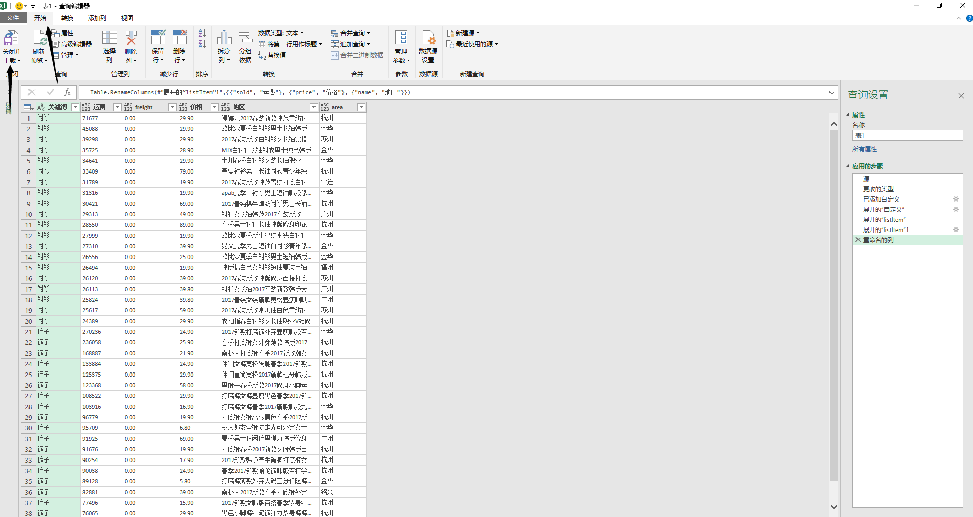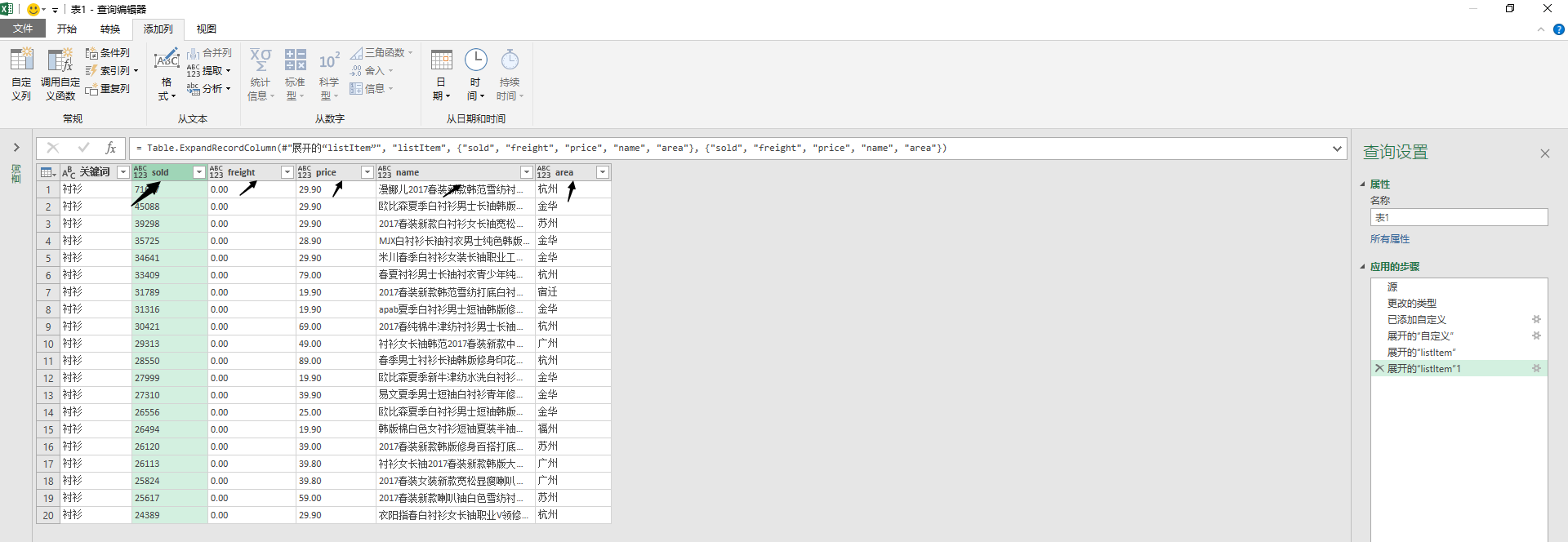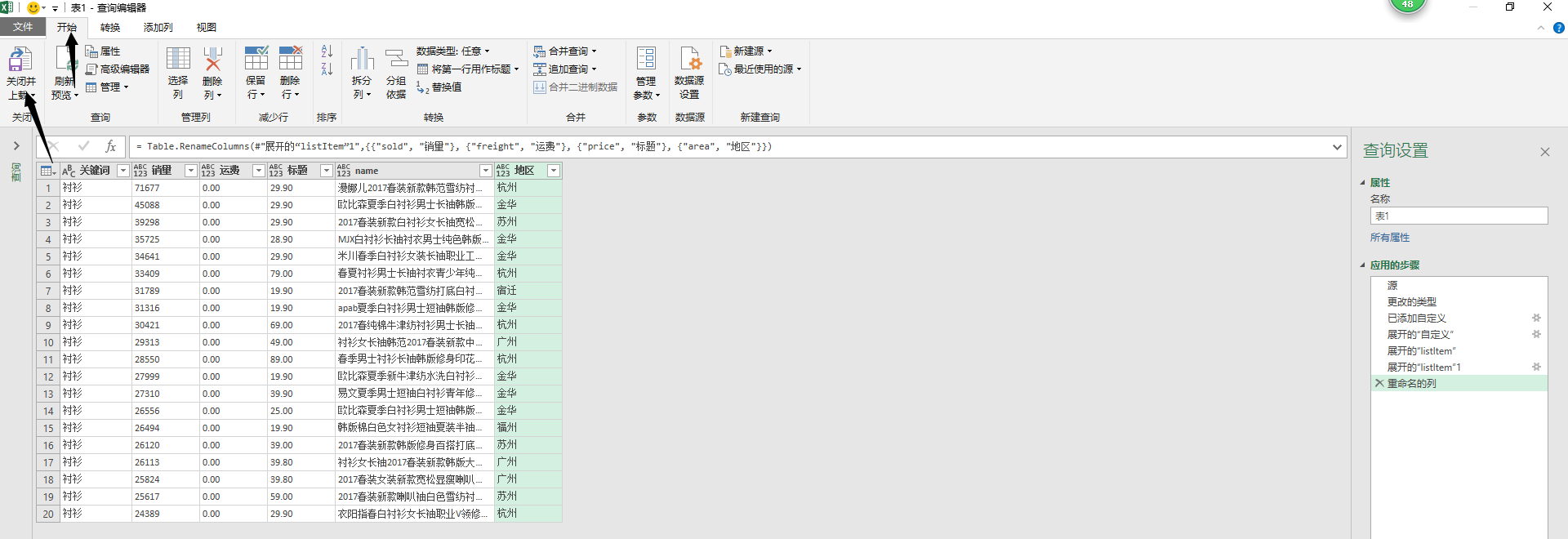 →到这里,一个简单的爬虫就算完成了。Power Query有一个非常强大的功能就是他可以记录我们的操作,如果需要多个关键词的数据只需要在添加后刷新一下即可。