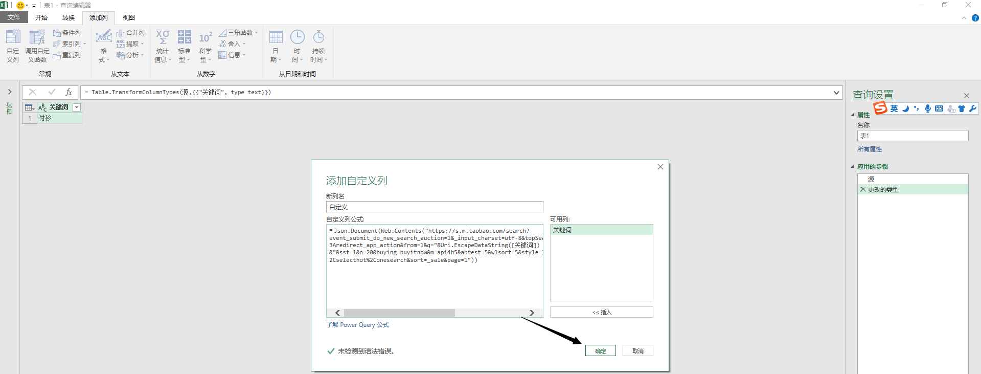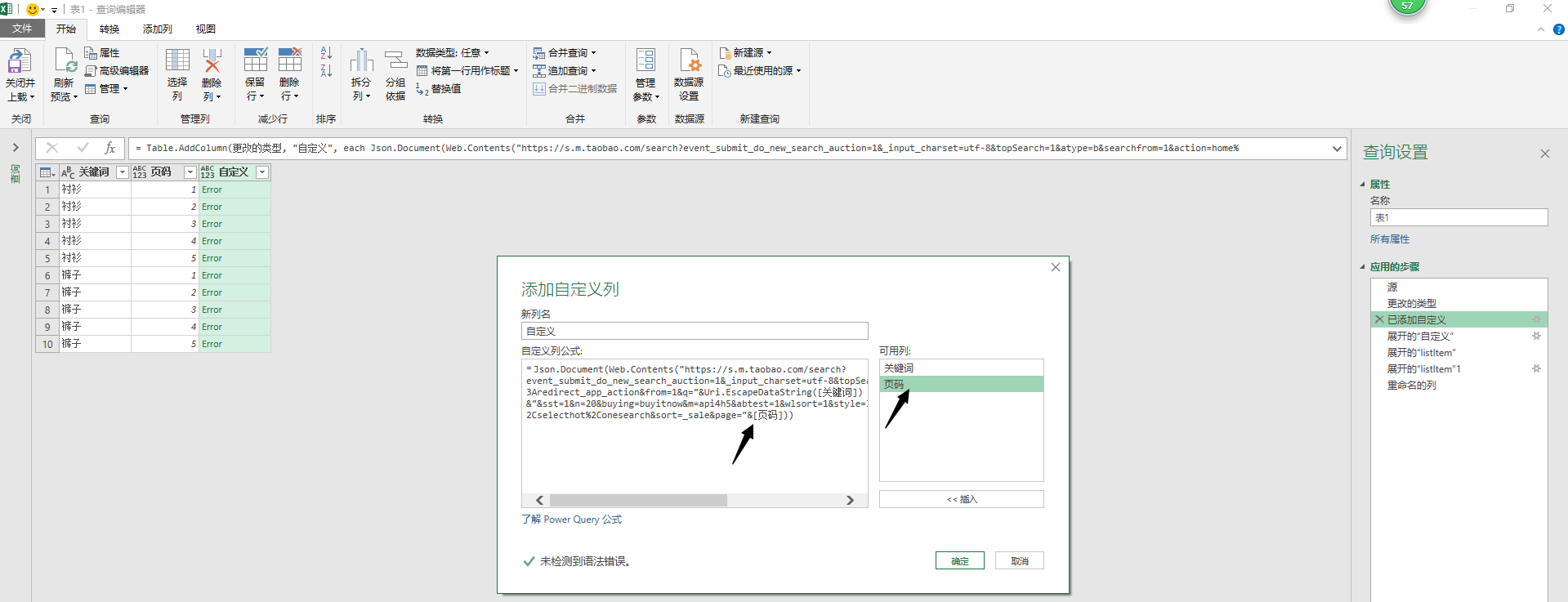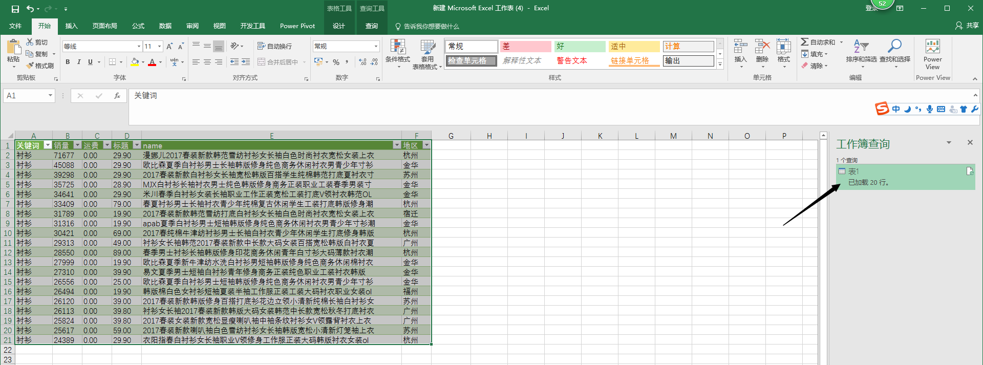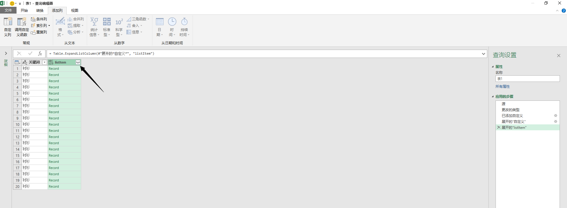 →到这里,一个简单的爬虫就算完成了。Power Query有一个非常强大的功能就是他可以记录我们的操作,如果需要多个关键词的数据只需要在添加后刷新一下即可。